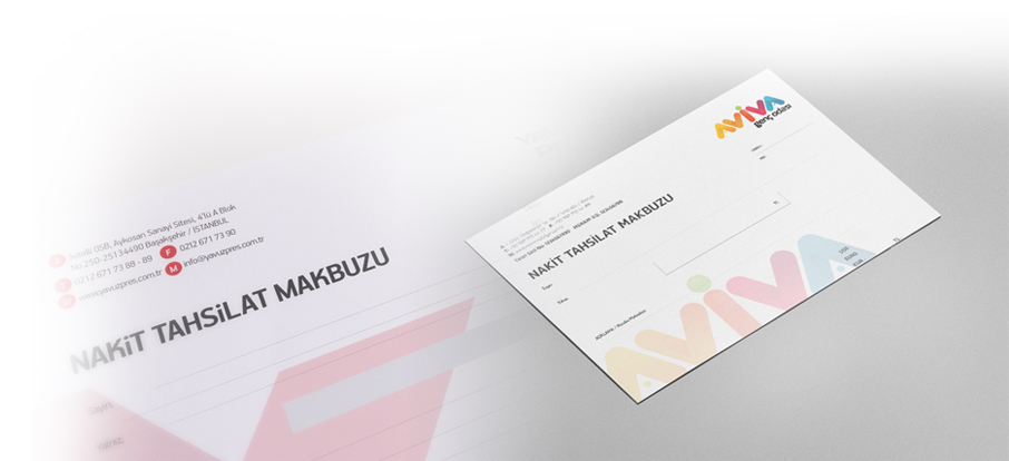 A4 / A5, Tek renk, otokopili, numaratörlü, 1 asıl ve 1 kopya şeklinde olabilmektedir.